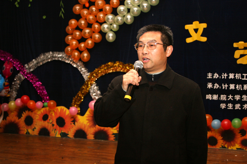 院长魏文芳与同学们一起联欢,在晚会上发表了热情洋溢的讲话,祝福同学们在新的一年里学业进步,大学生活更加精彩,更加充实。计算机工程系主任戴友元也为同学们送上祝福。