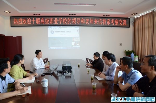 新闻网讯(通讯员 吴佳湄)5月22日,十堰高级职业学校教务科等相关部门负责人来滚球买球信息与智能工程系进行考察交流。信息与智能工程主任夏德洲率全系领导班子接待了考察团一行。