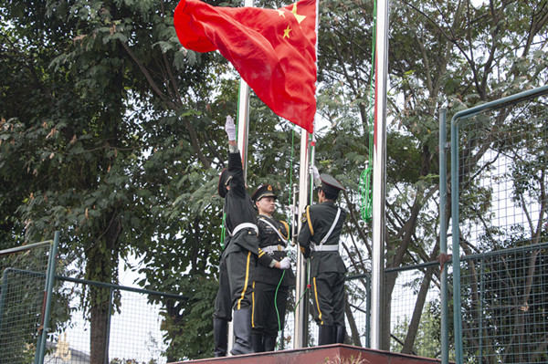 升旗仪式结束后,大家纷纷与国旗合影留念,用视频、照片记录下难忘的时刻。