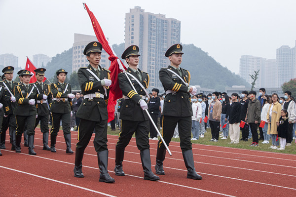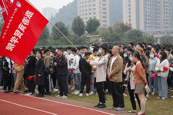 早晨8点,升旗仪式开始,校国旗护卫队迈着整齐的步伐入场,在激昂的国歌声中将国旗徐徐升起。同学们肃穆而立,怀揣着爱国之心共同庆祝祖国母亲生日。滚球买球学生代表张治以《提升自我 振兴中华》为题作国旗下讲话,他阐述了新冠疫情爆发对人们生产生活的影响,深深感激奋战在抗疫一线的医护人员和志愿者老师们,表示青年大学生要肩负起时代担当,刻苦学习专业技能,在祖国需要的时候挺身而出、奋勇向前,为建设伟大祖国贡献青春与智慧。