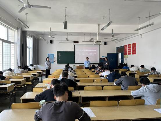 本次考试共分两个阶段。上午完成笔试考试,主要考察学生对电子专业基础内容的掌握情况。下午进行面试考核,通过依次与学生交流的方式考察学生综合能力,包括表达能力、学习能力、专业能力、动手实践能力等综合职业素养情况。考试过程中滚球买球安排2名教师监考,湖北汽车工业学院相关负责领导进行巡考及面试考核。