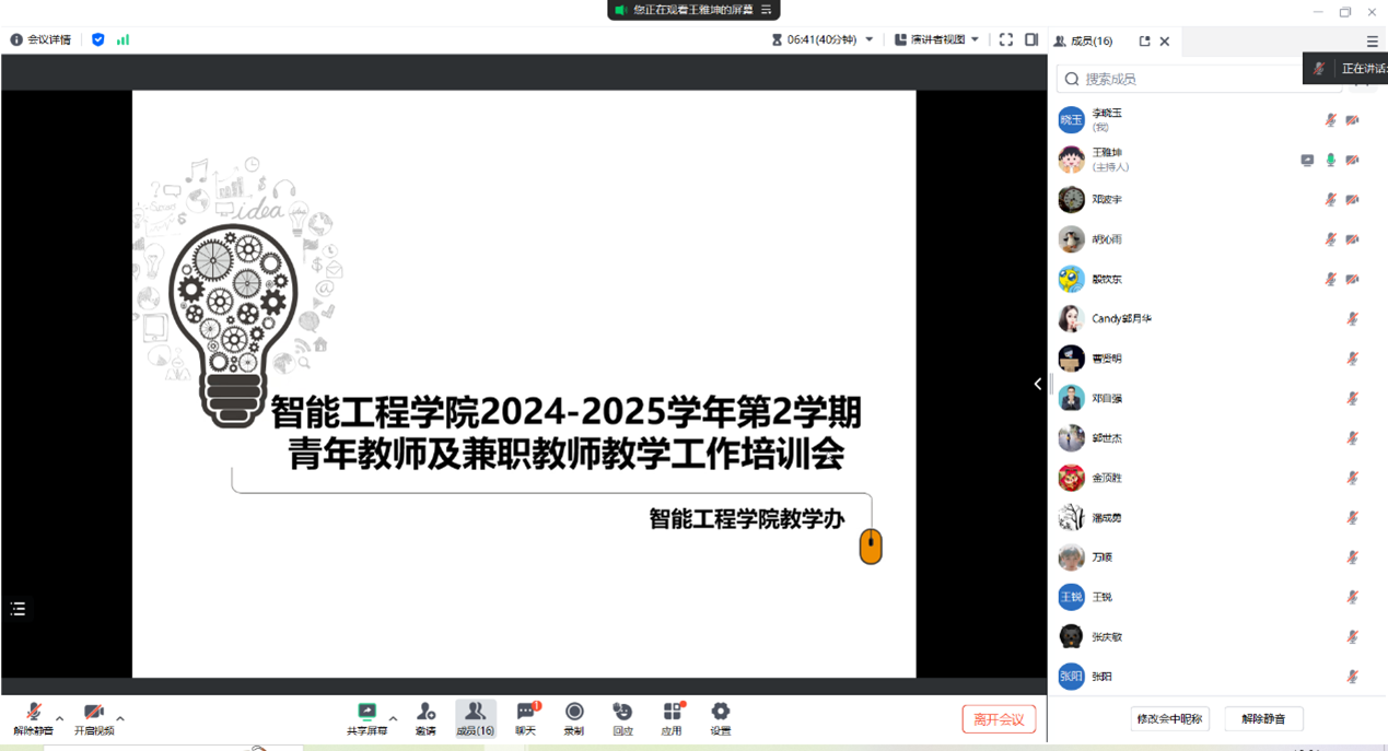培训伊始,学院介绍了院系情况,涵盖教学管理人员、教学设施构建及教师考核等内容,让教师们对教学管理架构和自身权益有清晰认知。随后,聚焦教学过程材料编写规范,通过对湖北工业职院课程教学资料模板和教案参考模板的学习,助力教师们规范教学文档撰写。最后,围绕师德师风开展教学管理文件学习,强调《新时代高校教师职业行为十项准则》等文件要求,引导教师坚守职业道德。