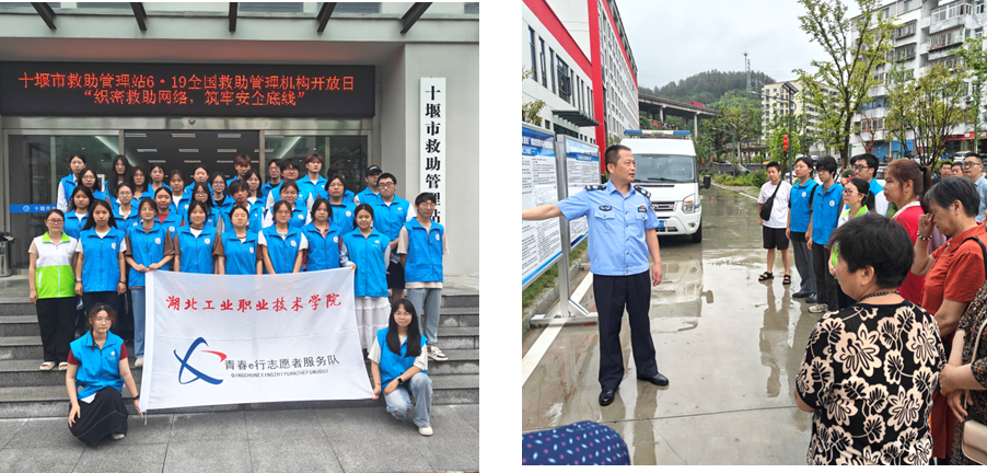 志愿服务不仅限于校园,“青春e行”的脚步还迈向更广阔的社会舞台。6月19日,服务队与十堰市救助站联合举办开放日活动。志愿者们通过讲解救助知识、引导参观体验、收集意见建议等方式,搭建起社会关爱困境群体的桥梁。活动不仅让市民深入了解救助工作,更展现了当代大学生心系社会、服务民生的责任担当。