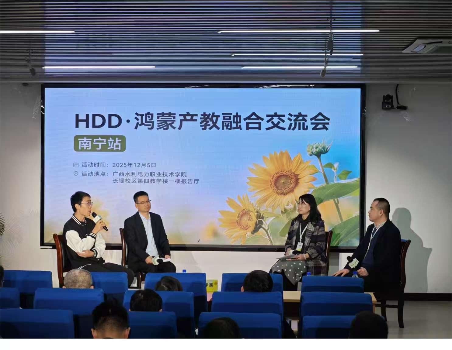 2025年12月5日,“HDD・鸿蒙产教融合论坛”在广西水利电力职业技术学院成功举办。沈玲院长受邀参会,并作为高校代表参与核心圆桌研讨,与区内外近30所高校代表、华为鸿蒙团队及业界精英共探鸿蒙生态人才培育之道。